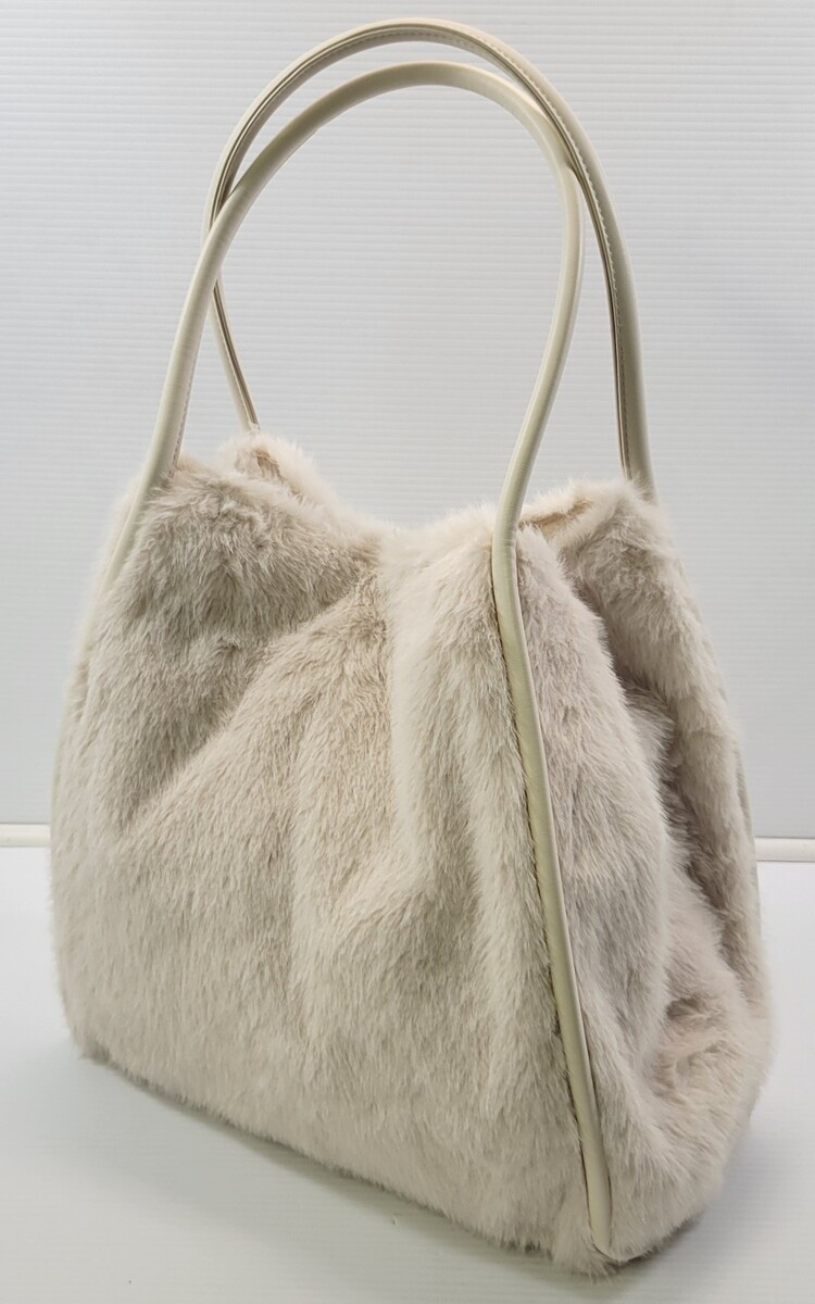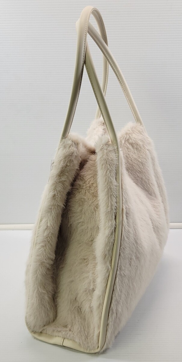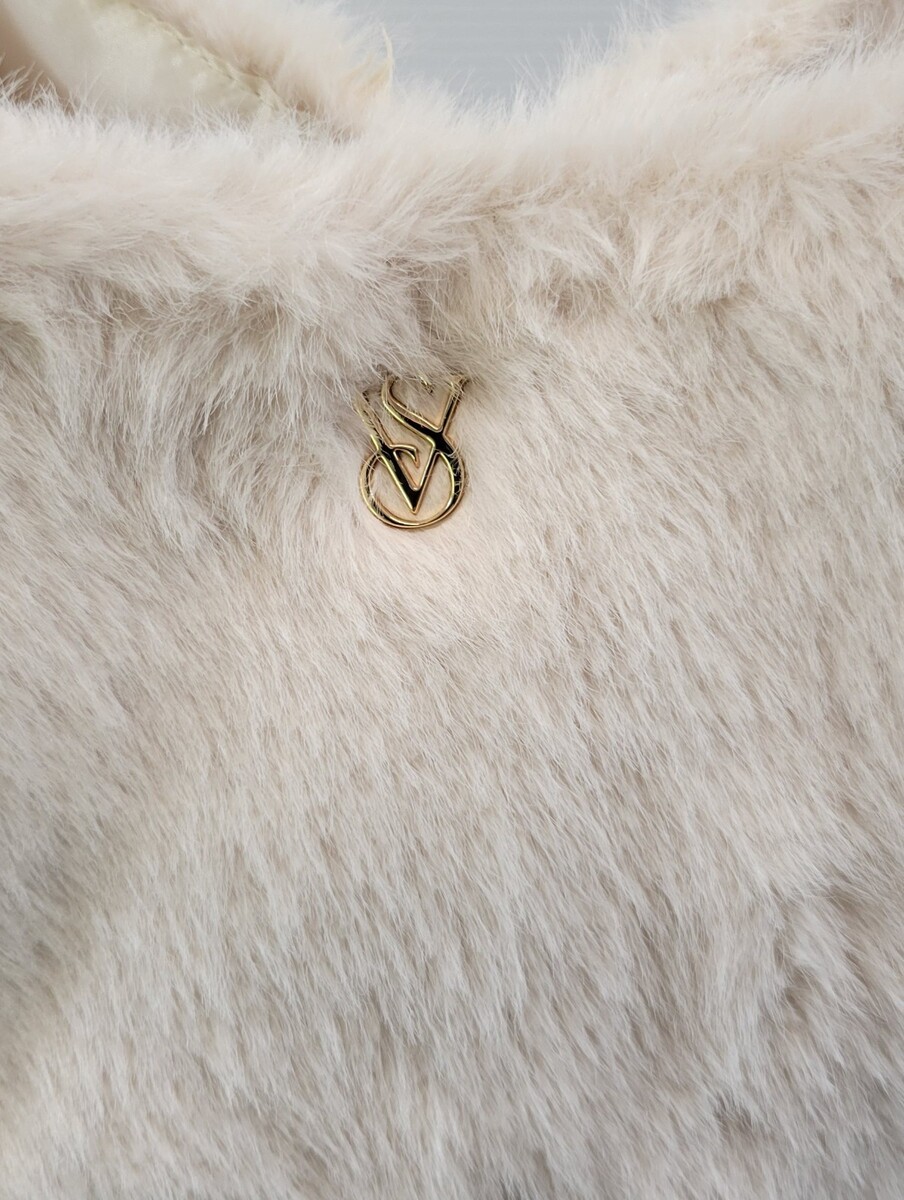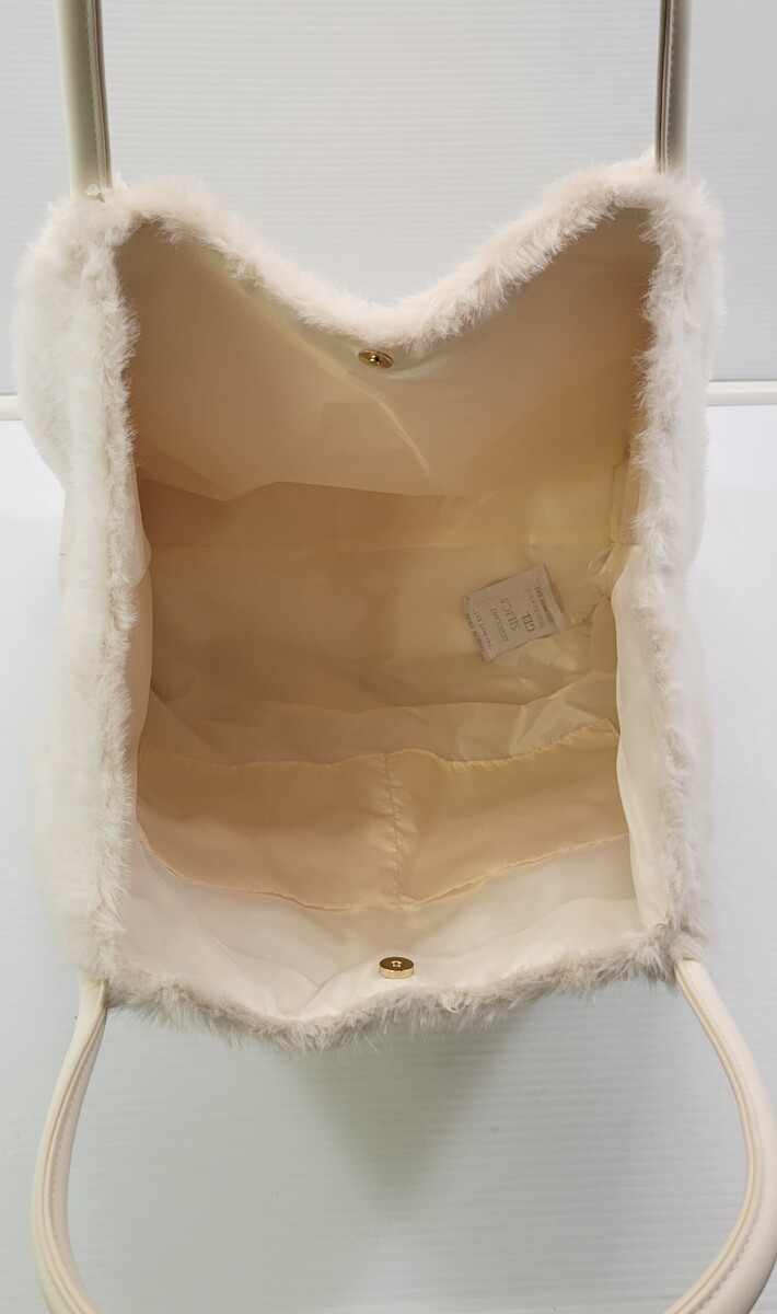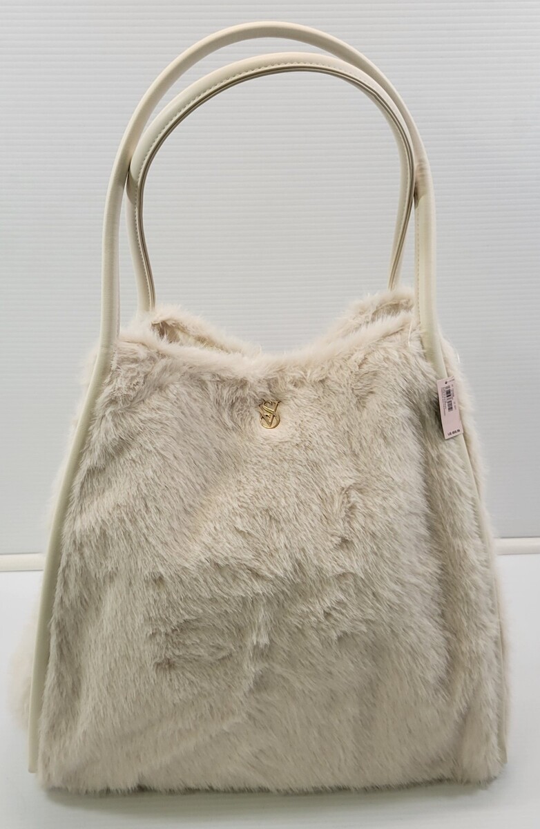 c7) Victoria's Secret Woman White Ivory Faux-Fur Fuzzy Tote Bag