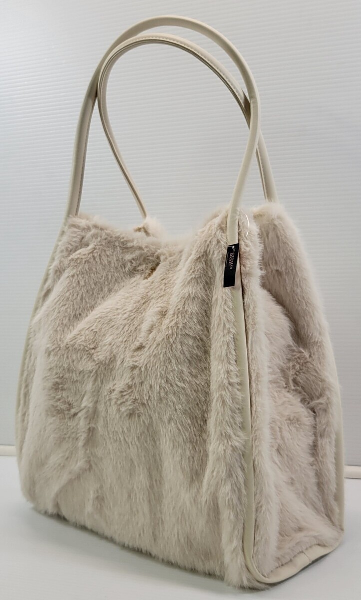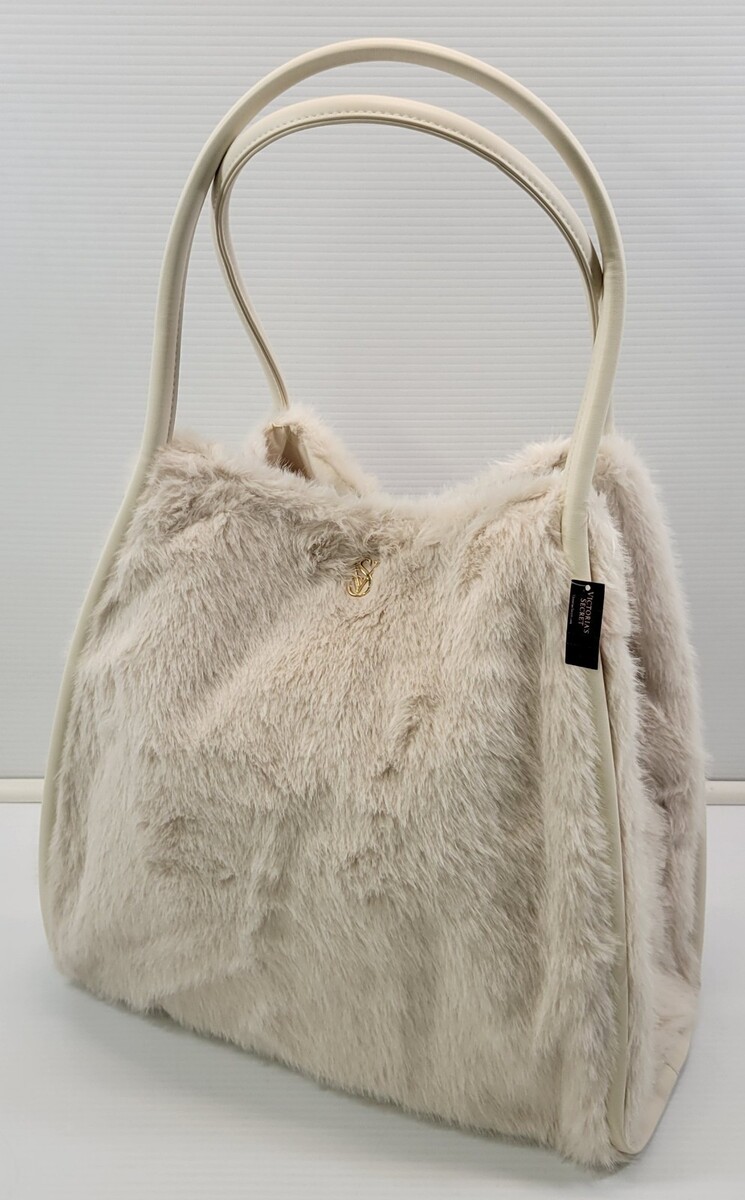 - c7) Victoria's Secret Woman White Ivory Faux-Fur Fuzzy Tote Bag