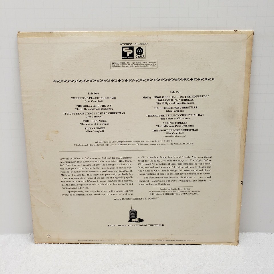 Christmas with Glen Campbell - SL-6699 Capitol Stereo 12" LP Record Holidays - Some surface noise and scratches. Cleaned and tested. Images shows the actual album that will ship.