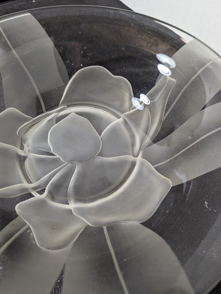 Beautiful etched glass serving bowl 12.25" w x 2" h