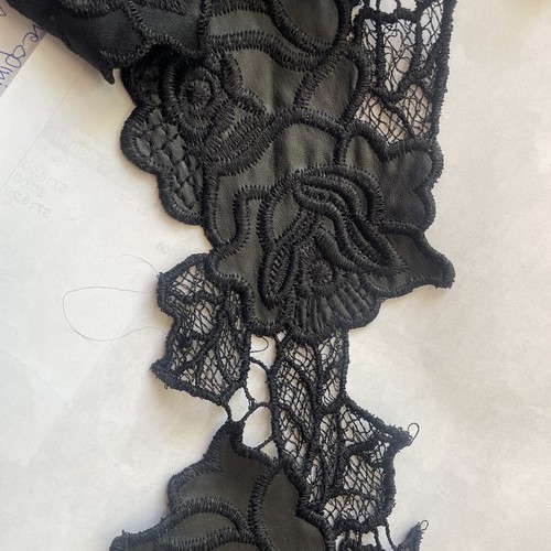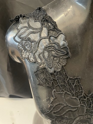 - embroidered Black Faux Leather Mesh Lace Floral Unique Trim3.5” Per Yard