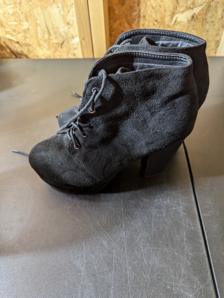 Elevate your shoe game with these stylish ankle boots from Forever 21. The Camille size 8.5 high heel features a solid pattern with a round toe and lace-up closure for a comfortable and secure fit. The ultra-high block heel stands at 4 inches and higher, adding an impressive height to any outfit.