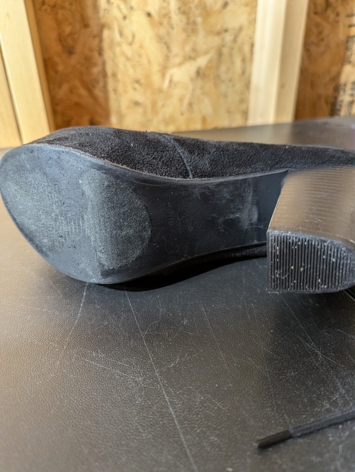 These black boots are made with faux suede and leather materials, making them both durable and fashionable. The fabric lining and faux leather insole provide additional comfort and the faux suede outsole adds a touch of elegance. Perfect for any occasion, these boots are a must-have addition to any wardrobe.