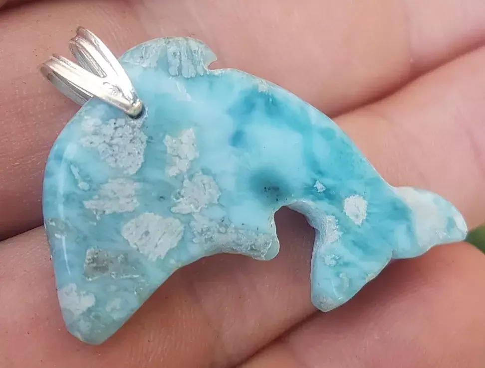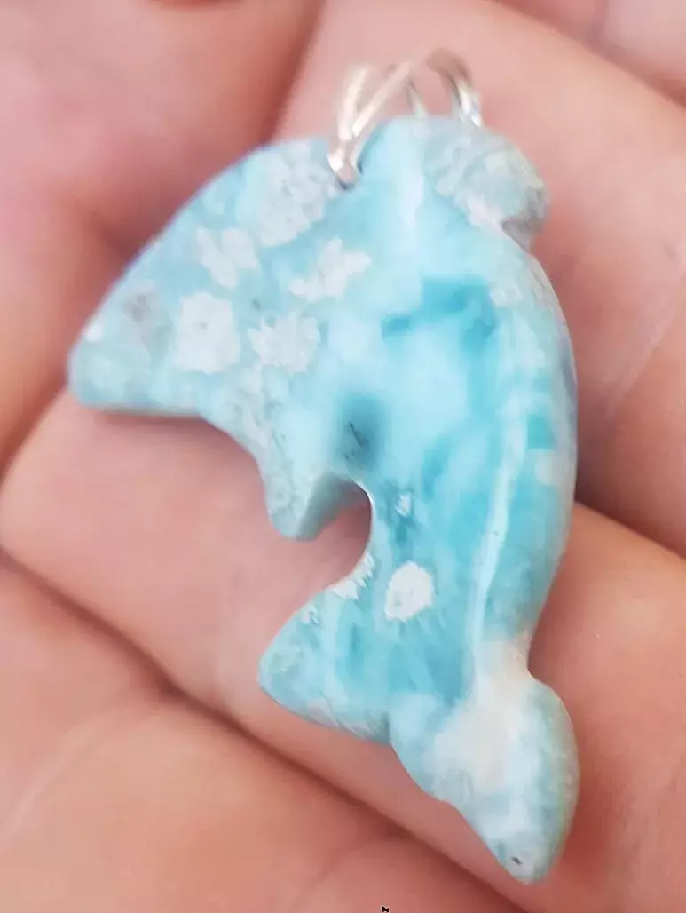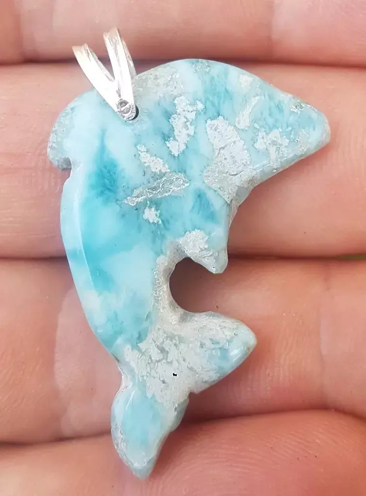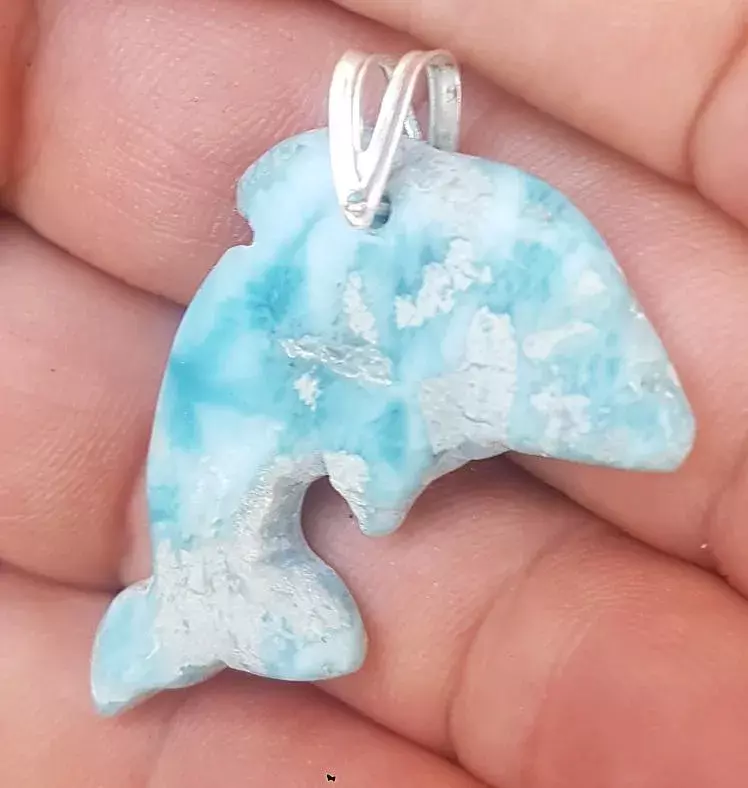 - great larimar handcarved DOLPHIN 925 sterling silver Gemstone pendant (wil-11)