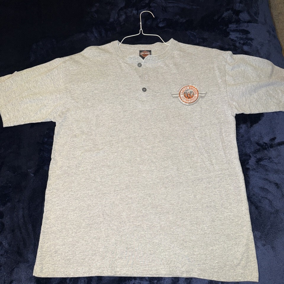 - Harley Davidson 3 Button Shirt L Desoto County Harley Davidson Horn Lake MS Grey