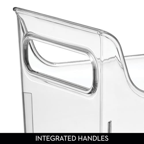 Bullet point: PLASTIC FOOD STORAGE BIN: Great for creating a clean and organized refrigerator or pantry. Ideal for yogurts, ketchup bottles, mustard bottles, jam, peanut butter, canned goods, candy bars, energy bars, smaller veggies, snack bags, pens, pencils, scissors, jewelry, makeup brushes, hair accessories, and more. Maximize storage space in refrigerator, pantry, kitchen cabinets, bathroom, office, craft room, bedroom, or on vanity, dresser, desk, or nightstand