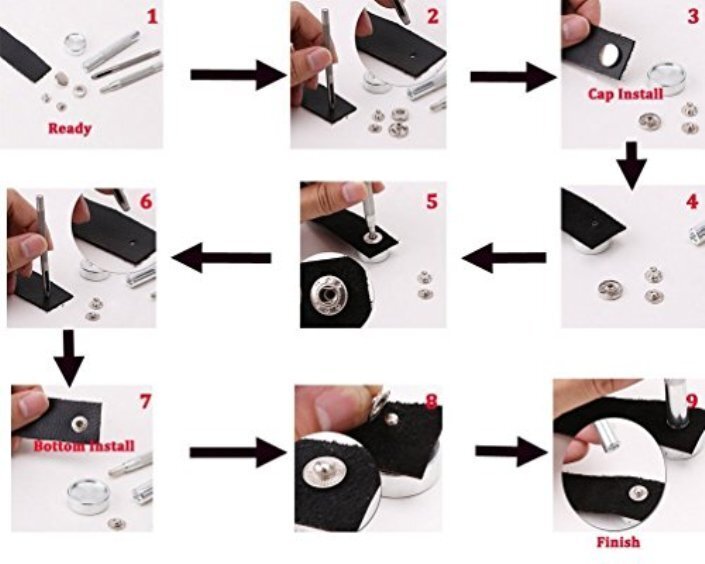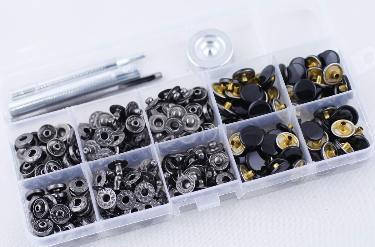 - inBox 30 Sets w/Tool Poppers Snap Fasteners Press 10/12/15/17mm Sewing Button