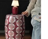 Product description: Elevate your living space with this exquisite ceramic garden stool showcasing delicate hand-painted four-leaf clover designs. The rich red base adorned with pink and white clover motifs creates a sophisticated accent piece that seamlessly bridges traditional Asian craftsmanship with modern functionality. Measuring 11 inches wide by 12 inches deep and 17.3 inches tall, this versatile stool serves multiple purposes - use it as a side table, extra seating, or an artistic display platform for your favorite decorative items. The classic barrel shape features a distinctive center perforation that adds visual interest while maintaining structural integrity. Each piece boasts unique hand-painted details, making it a one-of-a-kind addition to your decor. Perfect for both indoor and outdoor covered spaces, this ceramic stool combines practicality with artistic charm, capable of supporting up to 300 pounds when used as occasional seating. The glazed ceramic construction ensures lasting beauty while the lucky clover motif adds a meaningful touch to any setting.