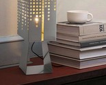 Product description: Elevate your interior design with this striking Interoknack Designer Stainless Steel Atmosphere Table Lamp. Featuring an artistic arrangement of layered stainless steel panels with precision round cutouts, this modern lamp creates captivating light and shadow effects that transform any space. Measuring 10.6 6.7 18.9 inches, it's perfectly sized for bookshelves, side tables, or window ledges. The lamp's crisp geometric silhouette and perforated shadow-play panels make it both a functional light source and a sculptural art piece. Ideal for living rooms, bedrooms, studies, or display shelves, this versatile accent light adds European designer flair to minimalist, industrial, or creative spaces. The durable, easy-to-clean stainless steel construction ensures stability and longevity, while its distinctive openwork design makes it a conversation-starting focal point in any contemporary interior.