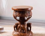 interoknack Hand-Carved Thai Solid Wood Elephant Stool, Creative Animal Accent S
