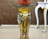 Product description: Transform your living space with this luxurious Elephant Plant Stand from Interoknack. Standing 31.9 inches tall, this statement piece features an exquisitely crafted golden resin base with intricate elephant detailing, complete with ornamental patterns and jeweled accents that capture old-world elegance. The generous 15-inch diameter tempered glass top provides ample space for displaying your favorite potted plants, floral arrangements, or treasured collectibles. With its substantial 12-inch diameter base, this versatile pedestal offers excellent stability while adding architectural interest to any room. Perfect for entryways, living rooms, or formal spaces, this functional art piece works beautifully as both a decorative plant stand and a distinctive side table. The durable construction and easy-to-clean surfaces ensure lasting beauty, while the elephant motif symbolizes good fortune and strength. This striking gold accent piece effortlessly complements luxury, eclectic, and art deco interior styles.