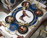 Transform your dining space with this Luxury Horse Print Waterproof Tablecloth from Interoknack. The elegant 33 x 33 inch accent linen features a sophisticated galloping horse motif complemented by gold chain accents and a striking navy and white geometric frame. Perfect for tea tables, coffee bars, nightstands, or small dining tables, this versatile piece elevates any interior design scheme. Crafted from a premium cotton-poly blend, this tablecloth offers both style and practicality with its waterproof, stain-resistant surface that protects furniture while maintaining a luxurious feel. The colorfast printed design and quality hemmed edges ensure lasting beauty through regular use and washing. This statement piece works beautifully in both modern and classic settings, creating an inviting atmosphere with its equestrian-inspired pattern. Machine washable for effortless maintenance, it remains vibrant and wrinkle-free wash after wash. Whether for everyday family meals or special occasions, this tablecloth combines sophisticated design with practical durability.