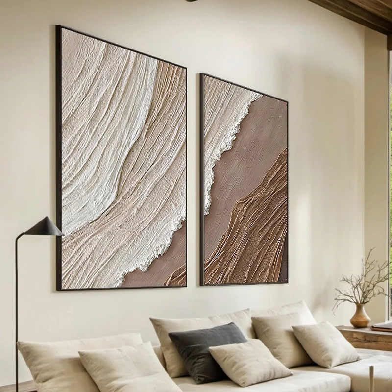 Transform your living space with this stunning Modern Abstract Textured Ocean Waves Hand-Painted Canvas Wall Art Set by Interoknack. Each piece showcases the serene movement of ocean waves through rich, three-dimensional textures meticulously created by skilled artists. Measuring an impressive 24 x 32 inches, this statement piece commands attention whether placed above a sofa, in a hallway, or near an entryway. The premium canvas is elegantly framed in sleek black aluminum alloy, combining contemporary style with lasting durability. The artwork's abstract composition ensures versatility across various interior design styles, particularly complementing minimalist and neutral color schemes. Ready to hang, this hand-painted masterpiece adds sophistication and artistic flair to living rooms, offices, or bedrooms. The textured details capture light beautifully, creating a dynamic visual experience that changes subtly throughout the day, bringing the calming essence of ocean waves into your home.