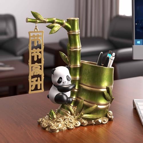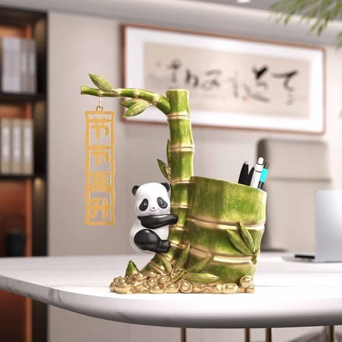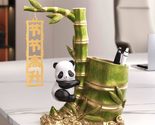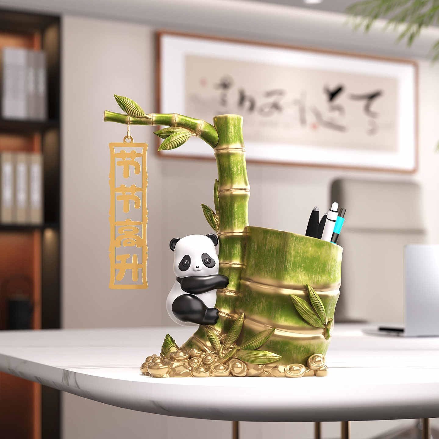 Product description: Enhance any workspace with this adorable panda bamboo pen holder, designed to organize pens, pencils, brushes, and daily accessories while celebrating achievements and new beginnings. With its playful panda climbing a gold-accented bamboo stalk, this organizer fits perfectly on any office desk, study table, nightstand, or shelf. Hand-painted details ensure each piece is unique, giving extra personality to home or classroom decor. Compact yet spacious, it offers ample storage without cluttering up your surface. Presented in an attractive gift box, it's perfect for graduation, teacher appreciation, or friendship gifts, making every workday brighter and more organized.