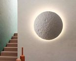Product description: Transform any space with the Interoknack Space Moon Crater Wall Lamp, a stunning 11.8-inch diameter luminous accent that brings the moon's mystique to your walls. This 3D textured resin and acrylic fixture recreates the lunar surface with remarkable detail, complete with realistic craters that create a poetic celestial ambiance. The built-in LED lighting system offers three different color temperature options, providing a soft, atmospheric glow perfect for bedrooms, living spaces, or outdoor areas. Weather-resistant and durable at 3.9 inches deep, this versatile wall lamp works beautifully in both indoor and outdoor settings?from minimalist living rooms to garden courtyards and themed commercial spaces. The circular full moon silhouette makes a dramatic statement piece against any wall, combining artistic design with practical lighting for spaces seeking unique celestial inspiration.
