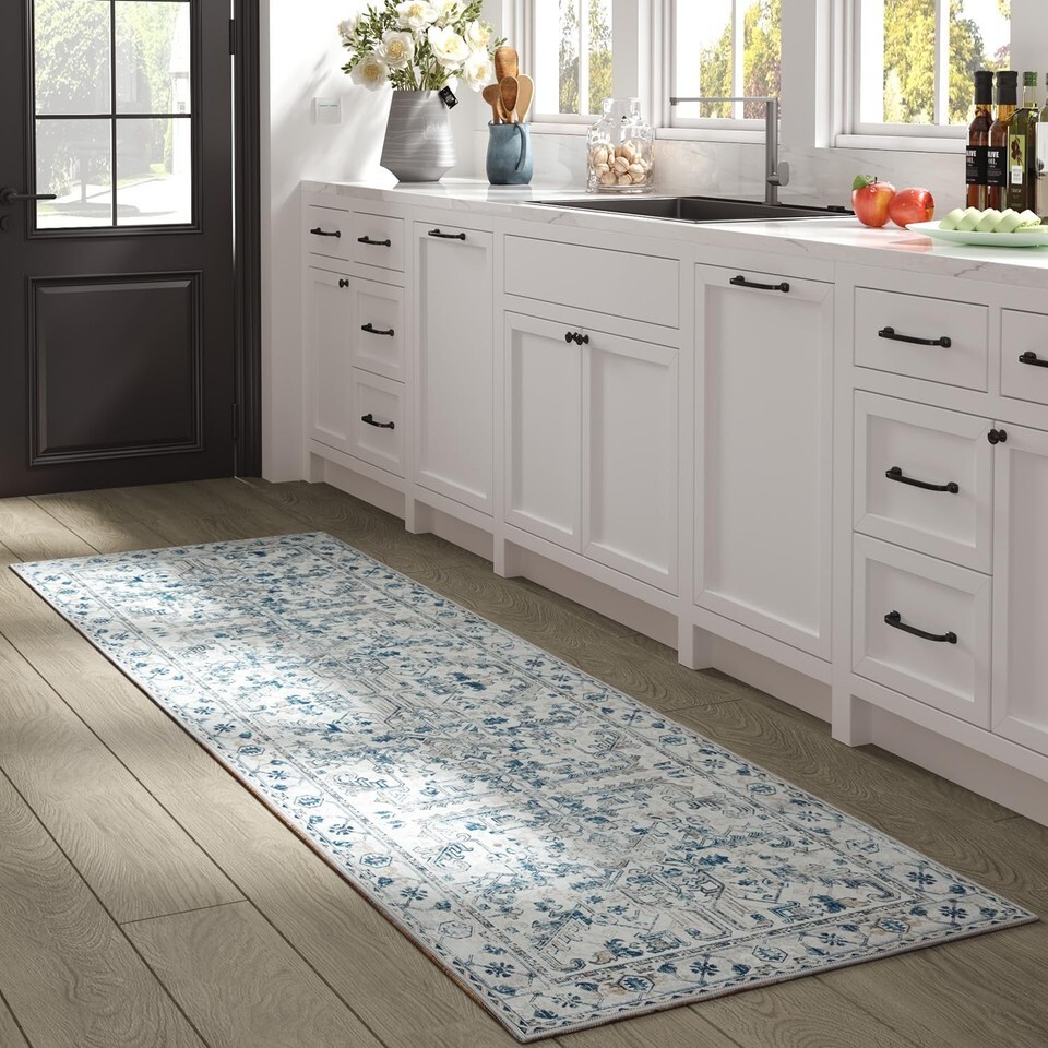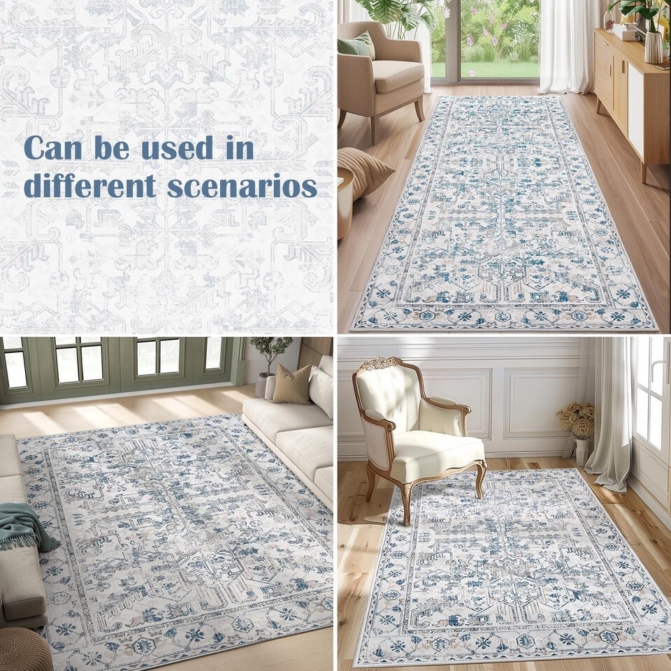 - jinchan Hallway Runner Rug 2x8ft Vintage Floral Non-Slip Taupe