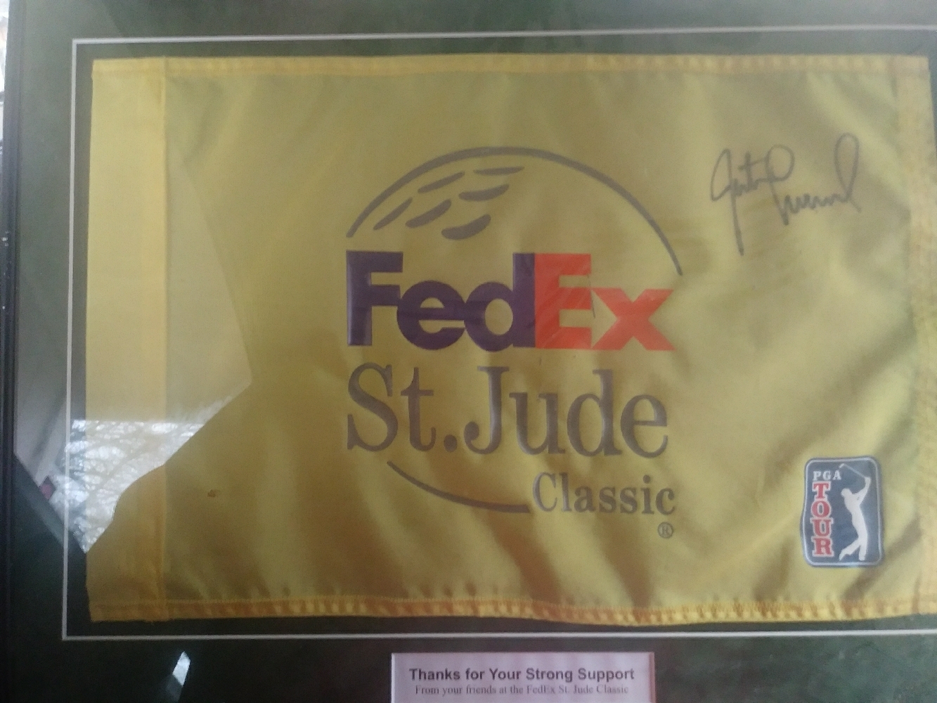 justin leonard autographed st jude flag framed and matted