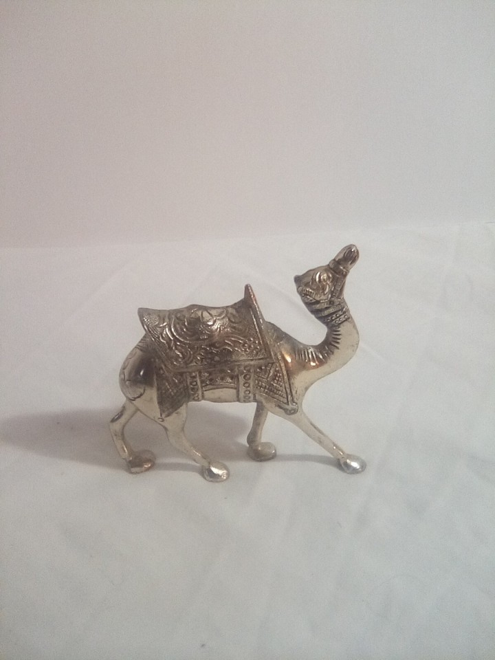 Lacquered brass camel ornately etched 5 in x 5 in x 1 in
