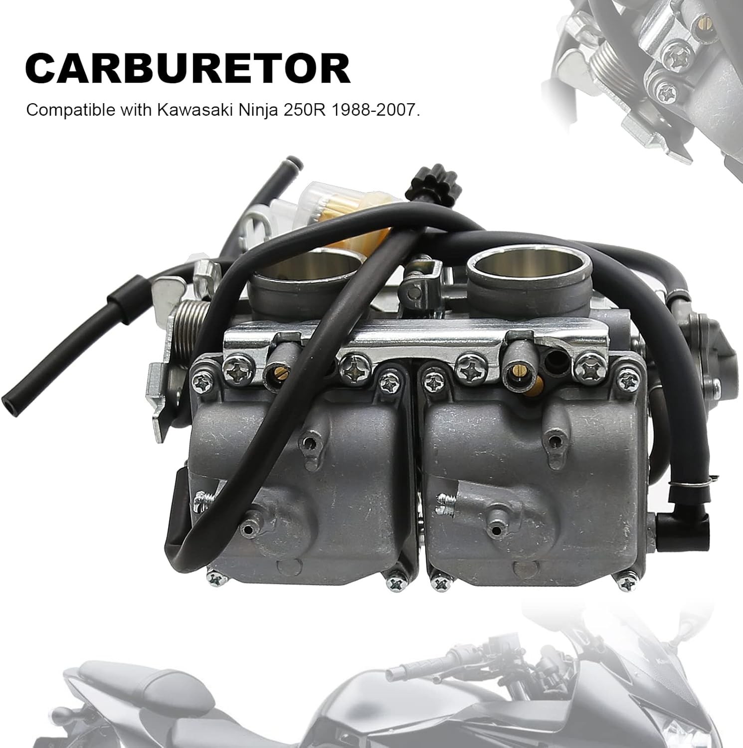 Replace Part Number: 15001-1433 15003-1602. Fitment: Carburetor replacement for Kawasaki Ninja 250R 250 EX250 1988-2007. Package Includes: 1 X Carburetor, 1 X Fuel Filter as picture show. Top Quality: Made of high quality materials, sturdy and durable, all part are tested before shipping, you can buy with confidence. After Service: we provide one year warranty, if you have any question please feel free to contact to us, we will reply you within 24 hours.