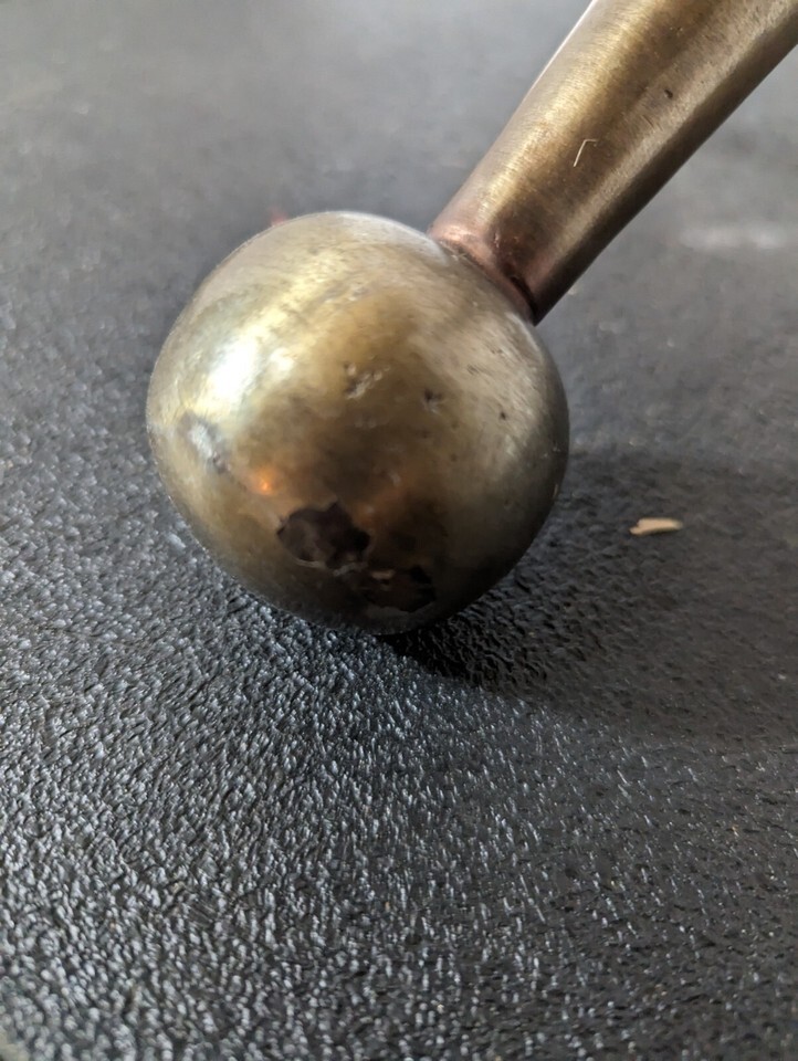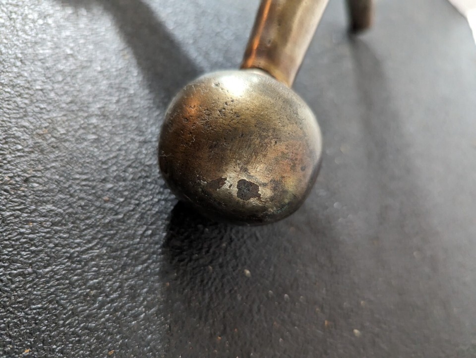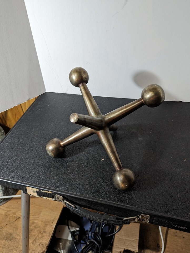 12" cast iron Jack in a bronze colored finish in the style of bill curry. Could be used as a bookend or door stop or even a conversation starter on a desk