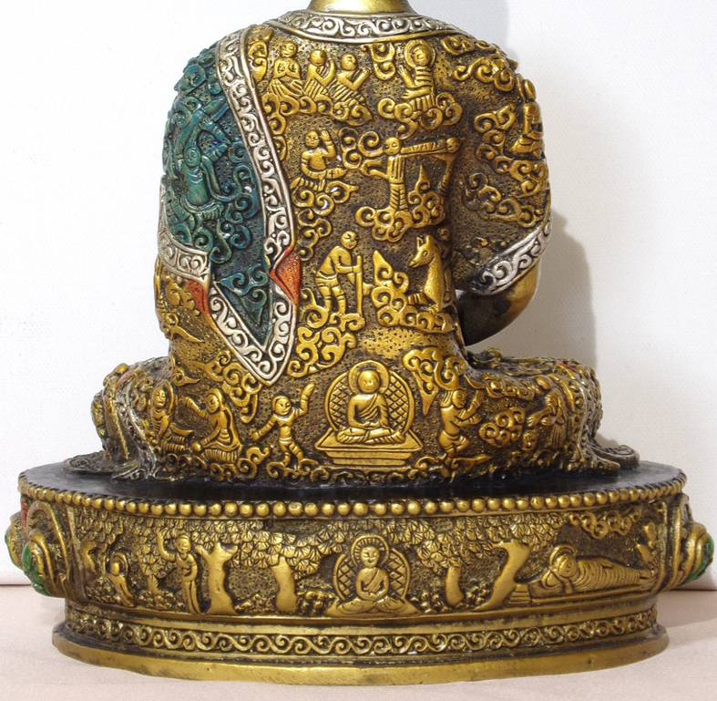 Gesture: This statue shows Guatama Buddha in the the dhyana mudra gesture, also known as the "samadhi" mudra, symbolizing the Buddha's deep unfathomable meditation.