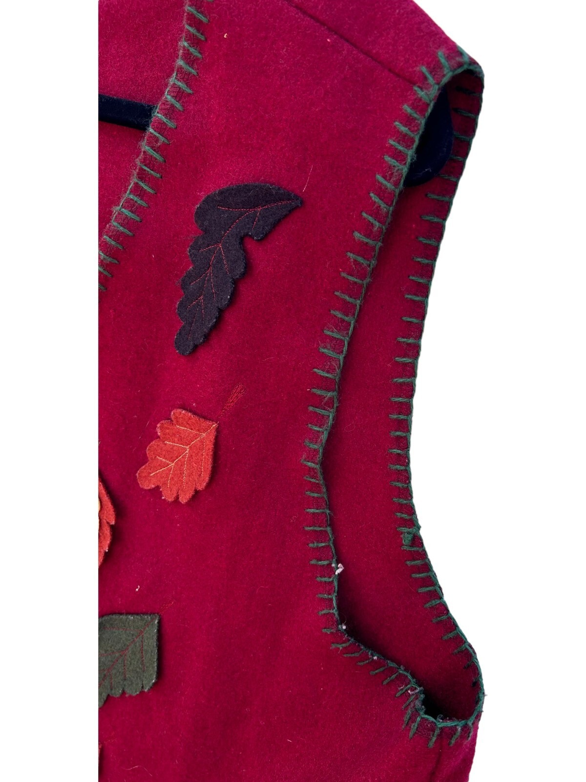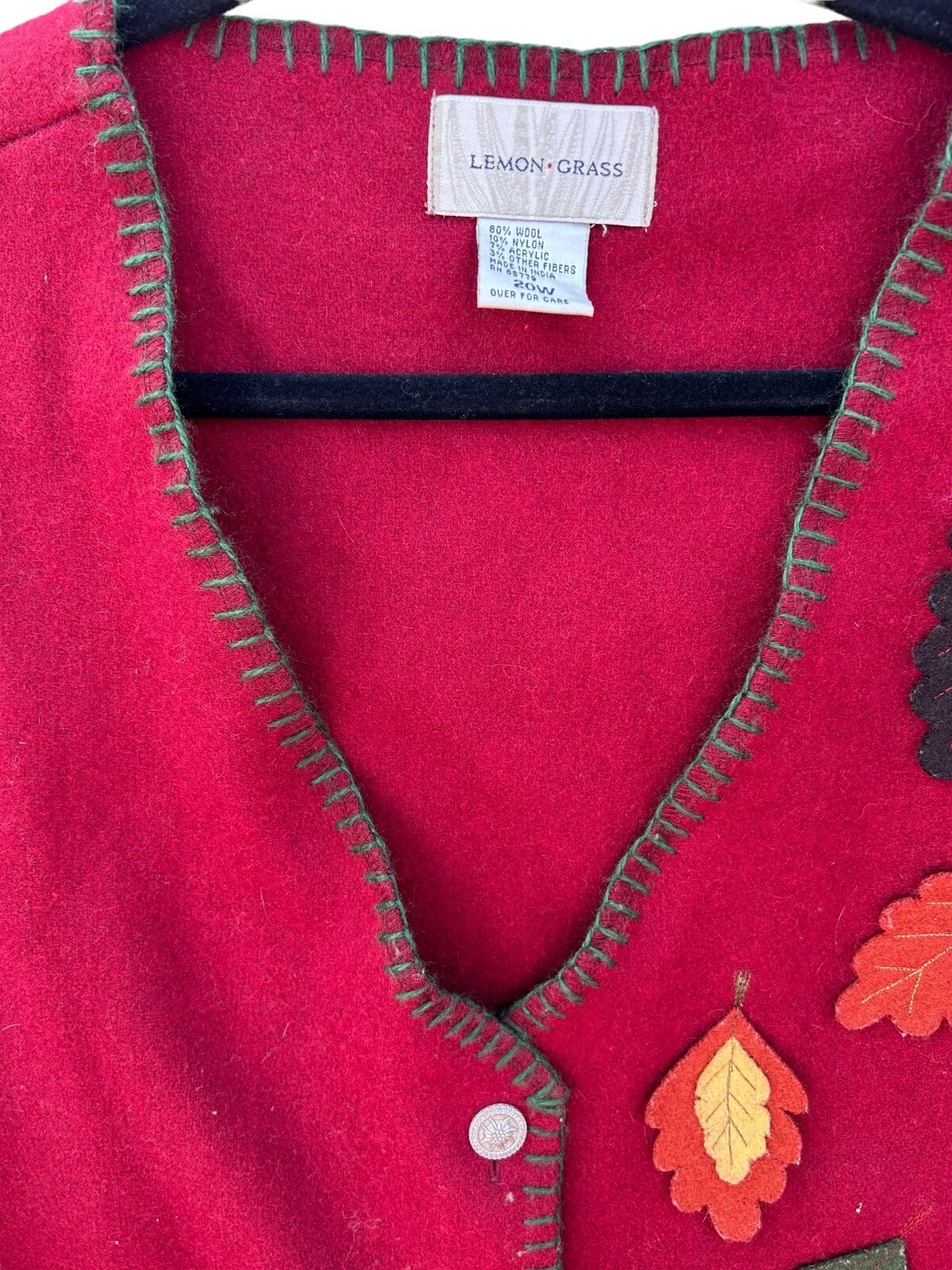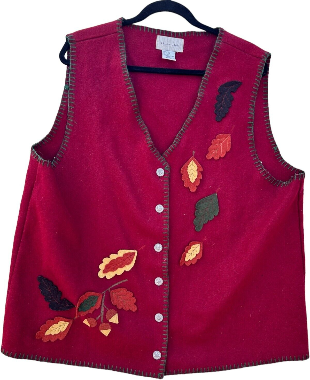 - lemon grass wool vest embroidered size 20W leaves autumn burgundy