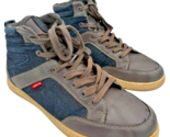 levi's men's blue denim canvas grey leather lace-up high-top casual size 9.5