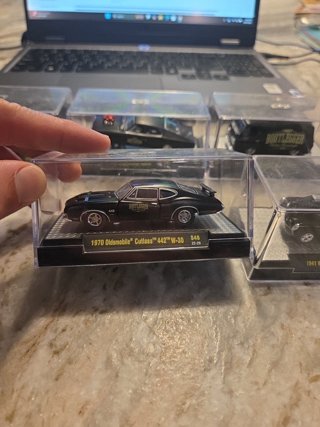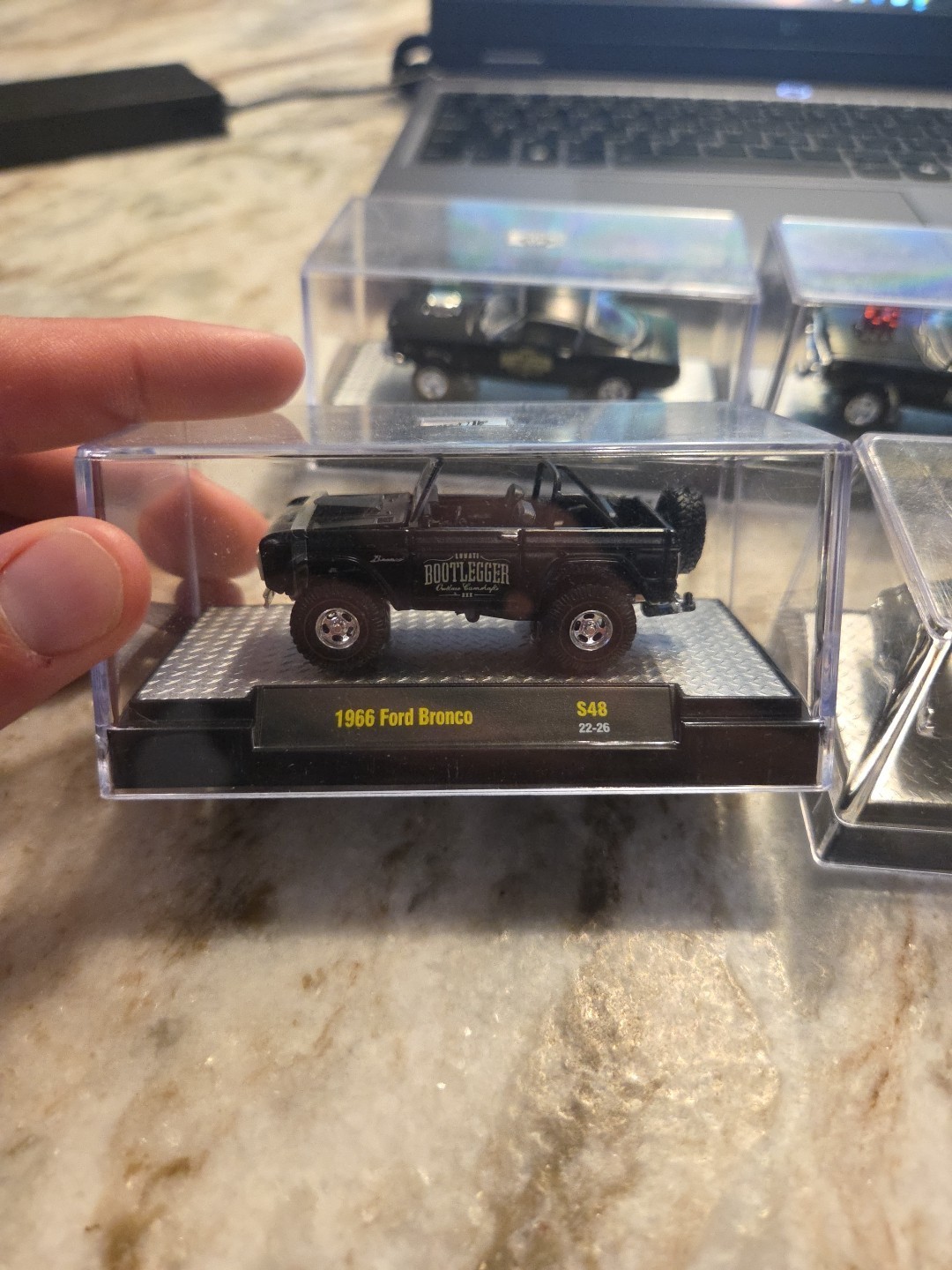 - lot 6 M2 1:64 Bootleggers die cast Mustang Charger Econoline Willys Bronco