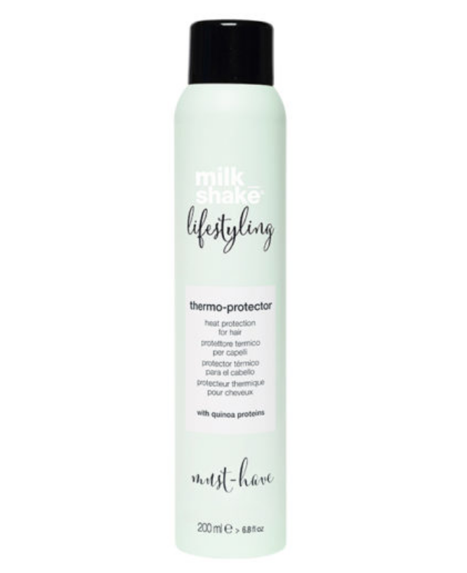 milk_shake lifestyling thermo-protector is an ultra-fine formula that was created to protect the hair fiber from the heat of blow-drying, straightening irons and curling wands. Creates an invisible film over the hair that prevents split ends, breakage and damage, as well as reducing drying time.