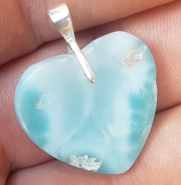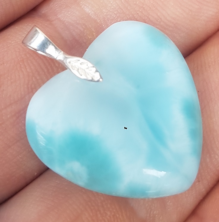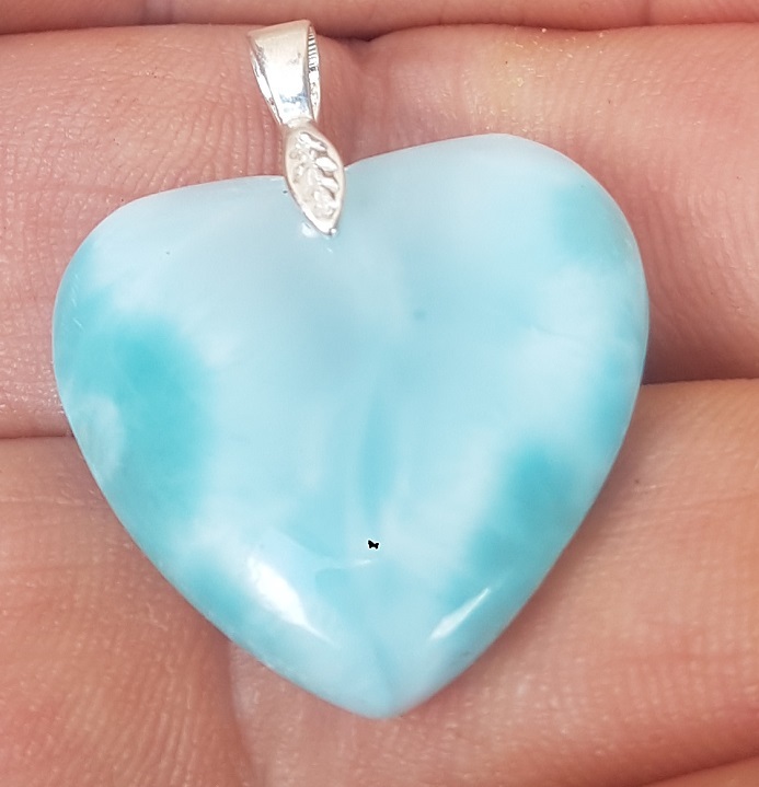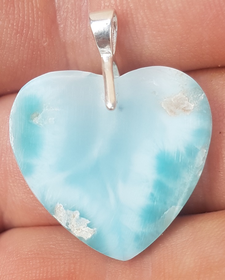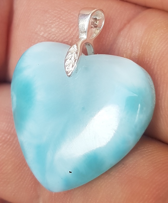 - natural LARIMAR carved Gemstone 925 sterling silver cabochon Heart pendant LH-3