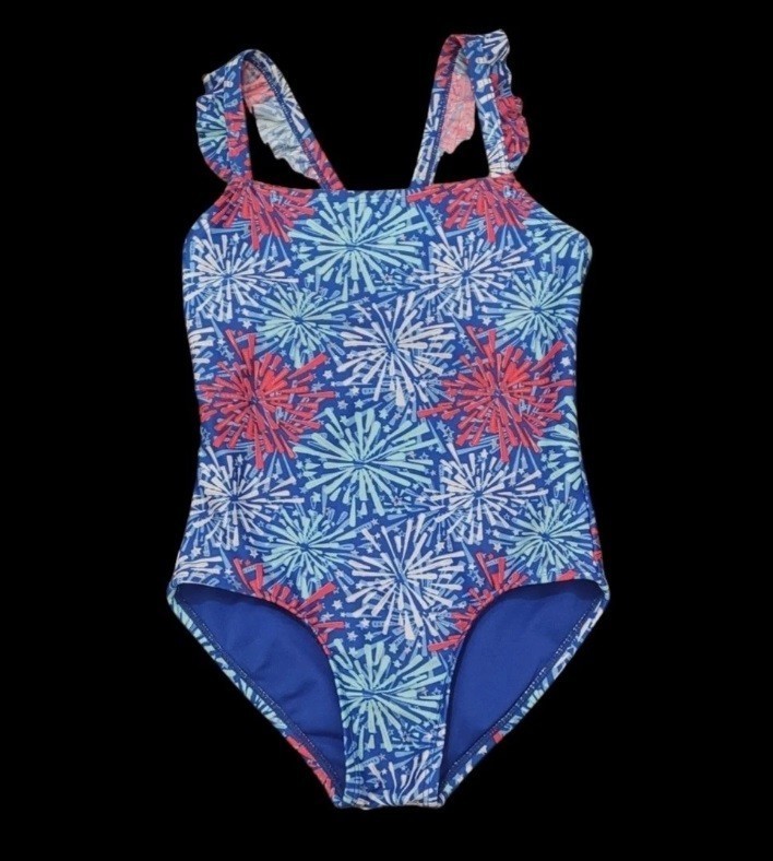 new Cat & Jack Girls ONE PIECE SWIMSUIT sz L (10-12y ) Fireworks Swimming Suit