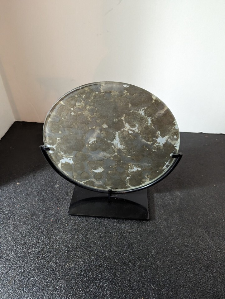 Distressed look to the mirrored surface makes for an interesting conversation starter