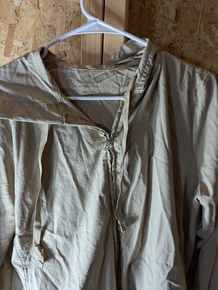 Embrace the blend of comfort and style with the NYC Sport Polyester Hoodie in a versatile beige tone. Designed for women who appreciate a mix of casual sportiness and practicality, this size large hoodie is a perfect addition to your activewear collection. It features a cozy V-neck and full zip closure for easy wear, ideal for transitioning from a brisk fall walk to a casual spring outing.
