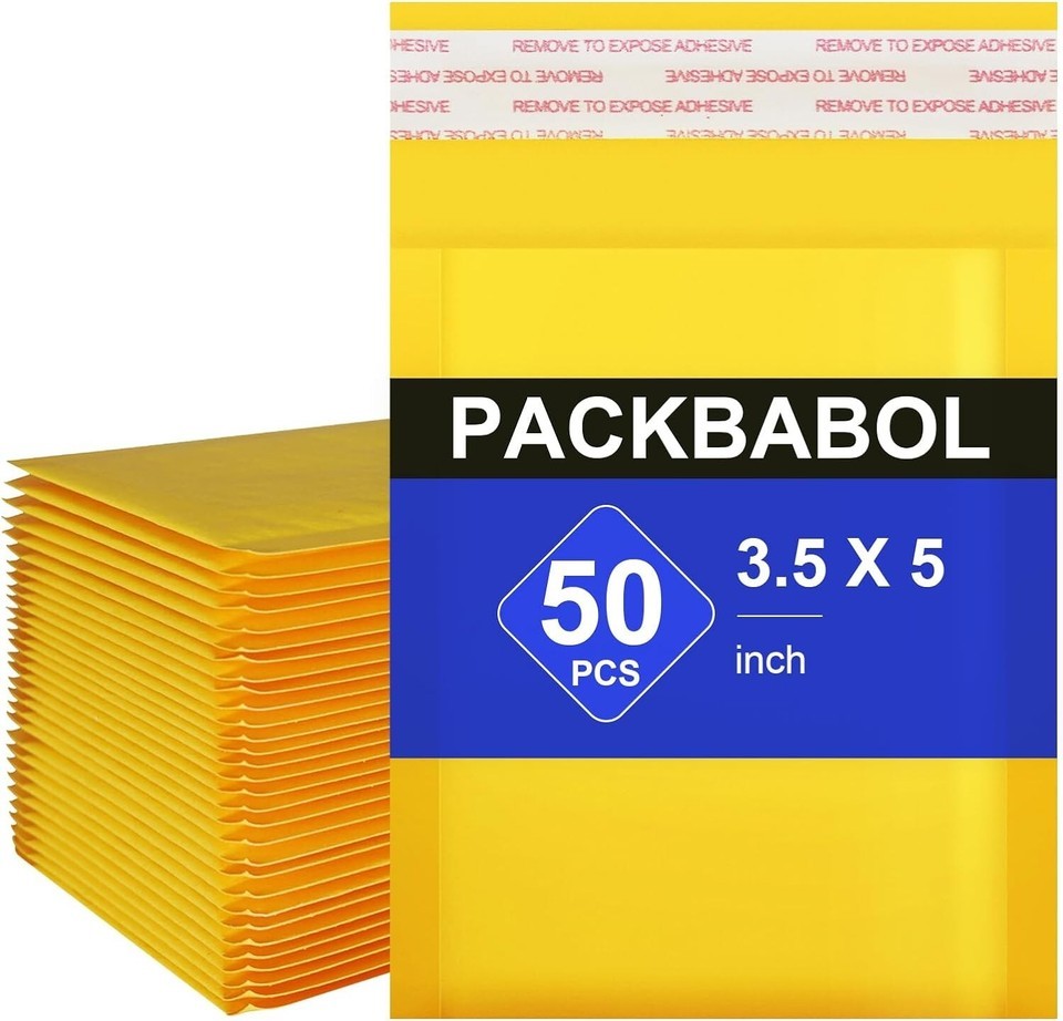 - packbabol Kraft bubble mailers 3.5 x 5 Inch 50 Pack Self-Sealing