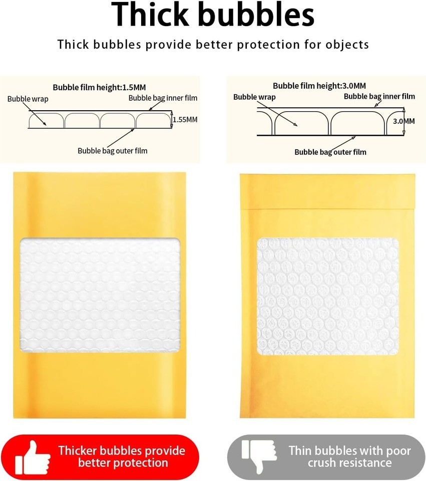?Outside Dimension: 3.5x6 inches Bubble Kraft Bag