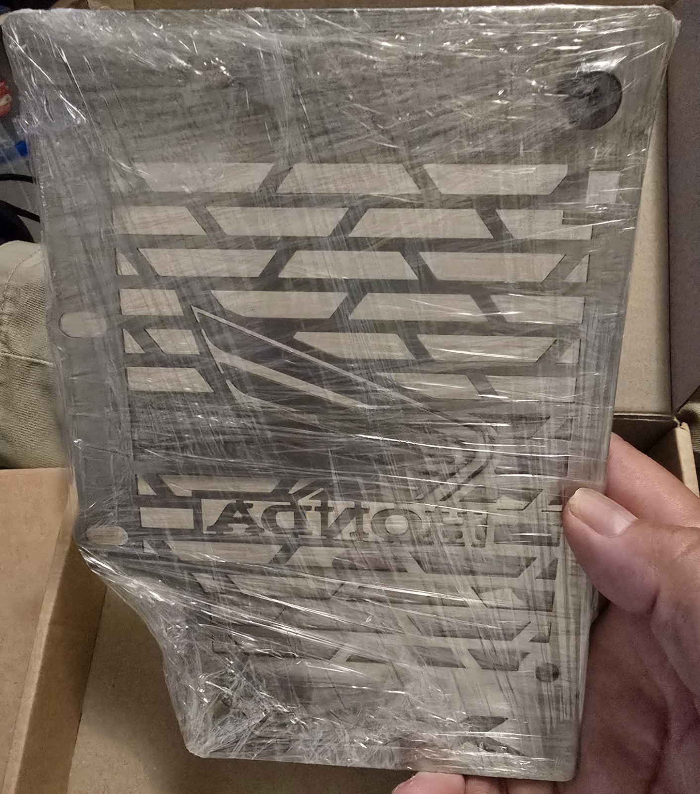 The "radiador guard" is a protective shield designed specifically for Honda motorcycles to cover and protect the radiator. Made with high-quality materials, this guard not only adds a sleek and stylish look to the bike but also helps to prevent debris, rocks, and other objects from damaging the radiator while riding on the road or off-road. This accessory is ideal for Honda motorcycle owners looking to enhance the look of their bike and provide extra protection to the radiator.