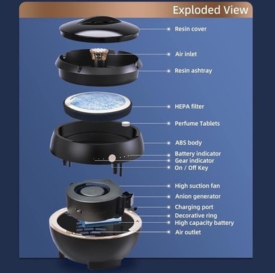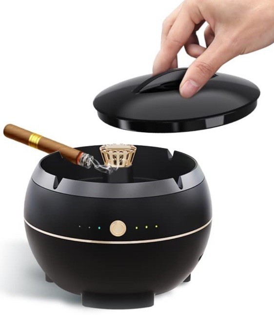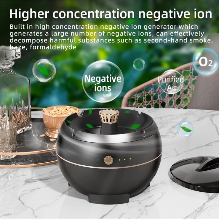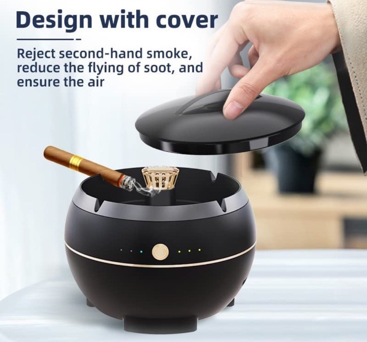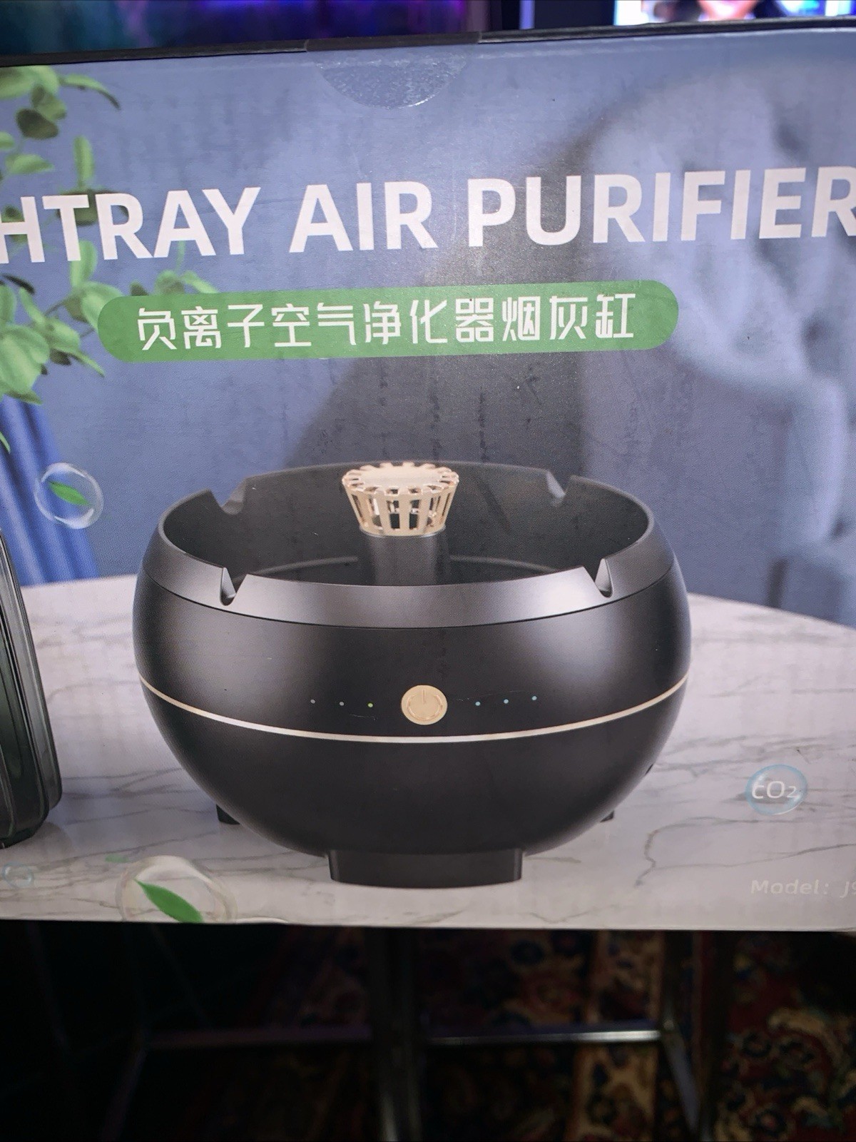 The product is a unique and practical ashtray air purifier specifically designed for cigarettes and cigars. This ashtray not only collects cigarette ashes but also filters out harmful pollutants and odors, promoting cleaner air for a healthier environment. Perfect for collectors or anyone looking to freshen up their space after a relaxing smoke.