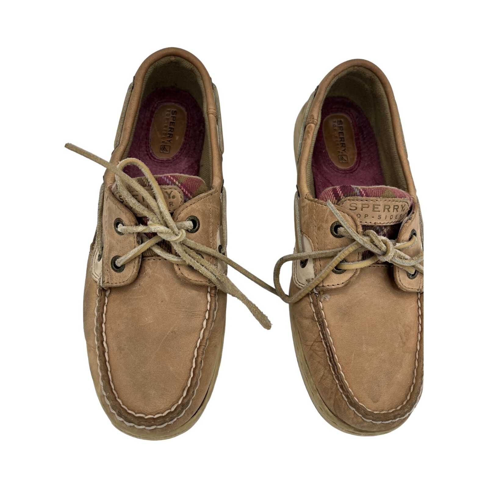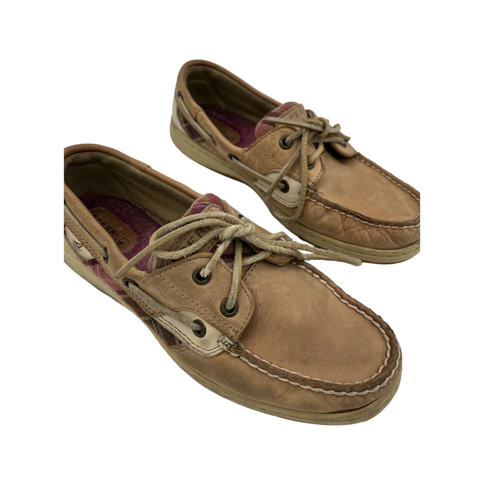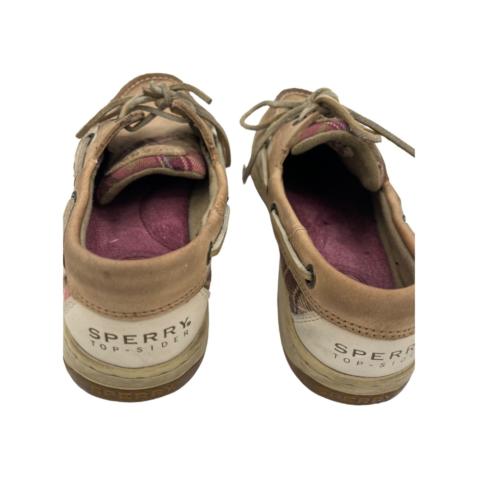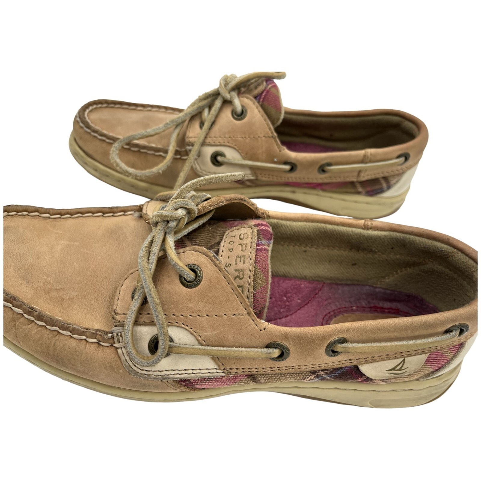sperry top sider womens angelfish boat shoes in tan with purple plaid size 7M