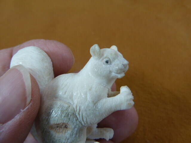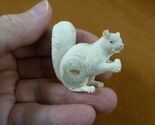 - squir-w7 little Squirrel + nut of shed ANTLER figurine Bali detailed carving