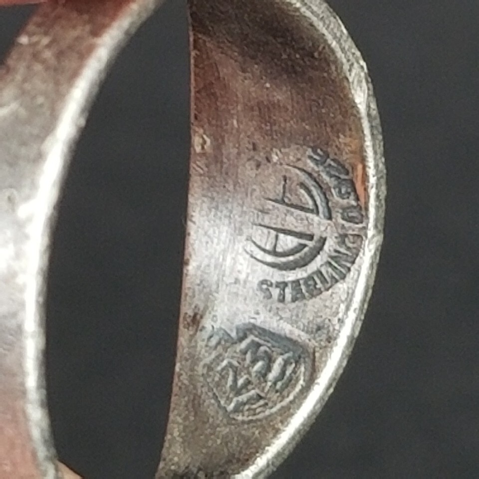 Vintage STERLING SILVER as marked. Also has a makers mark that I am not familiar with.