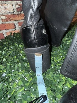 The product is a pair of Steve Madden black boots in size 7 for women. These stylish and trendy boots are perfect for adding a touch of edgy sophistication to any outfit. With a sleek black color and the brand's signature high-quality construction, these boots are sure to become a staple in any fashion-forward woman's wardrobe.