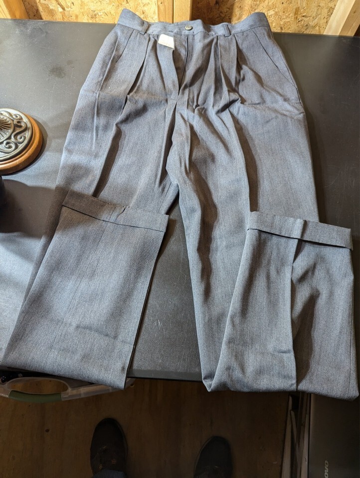 Elevate your wardrobe with these elegant Susan Bristol dress pants. The gray polyester blend fabric features a solid pattern and is perfect for any occasion, whether it be a party, business meeting, or formal event. The pants have a pleated front and straight leg style with a 29-inch inseam and cuffed hem.