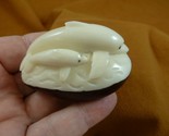 - tne-dol-322c Mama + baby Dolphin jumping ocean river dolphins TAGUA NUT figurine