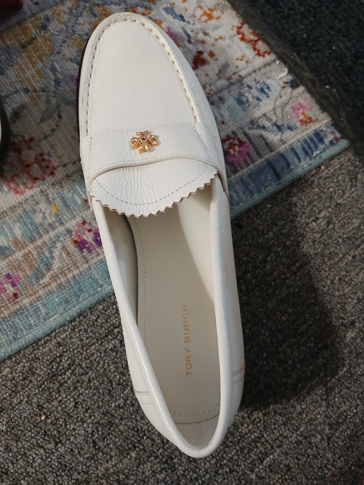 tory burch loafer, cream with gold accent.