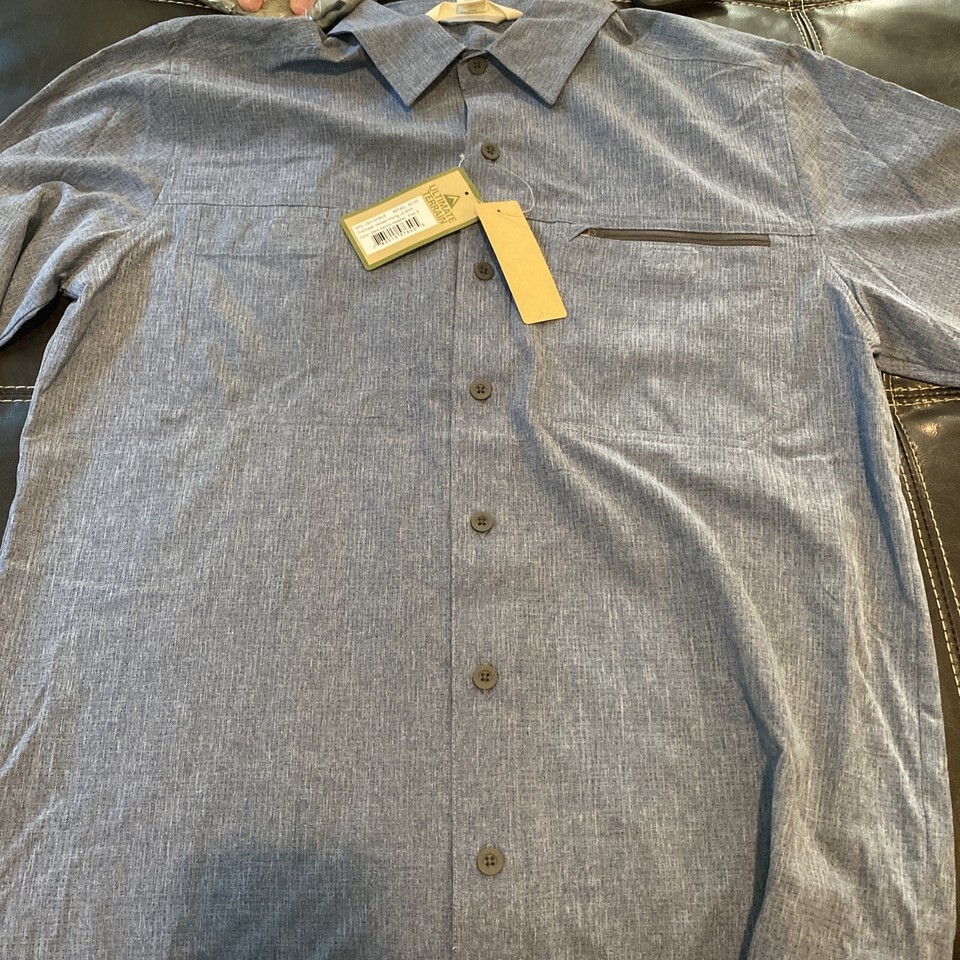 ultimate terrain trailhead vented hiking long sleeve mens S dark denim color.