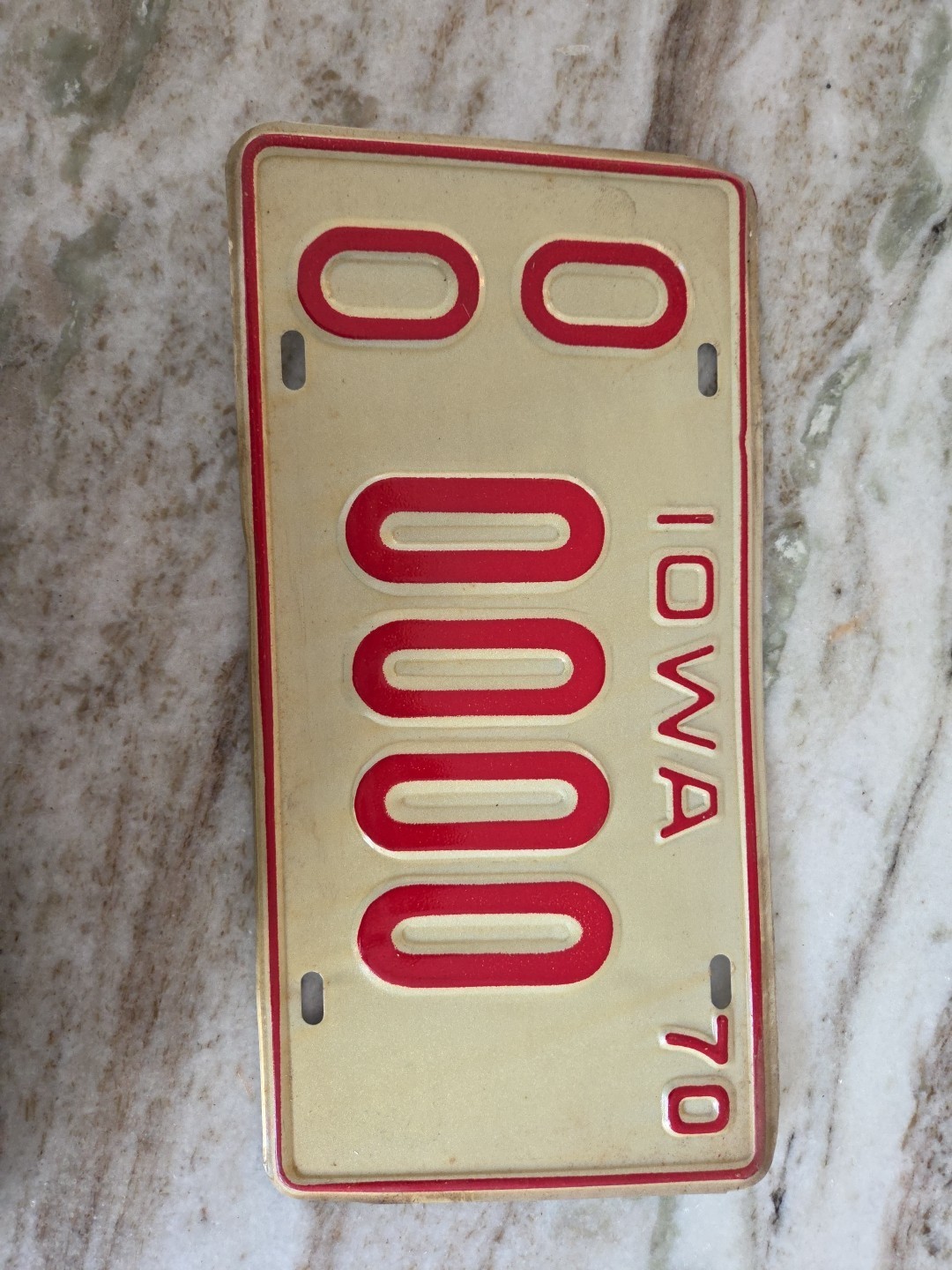- vintage 1970 Iowa Sample License Plate 00 0000