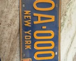 vintage New York License Plate Sample NY 1971 Tag # 0A-0000 blue / yellow