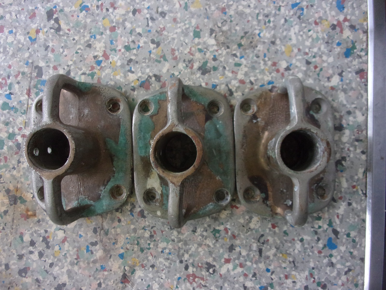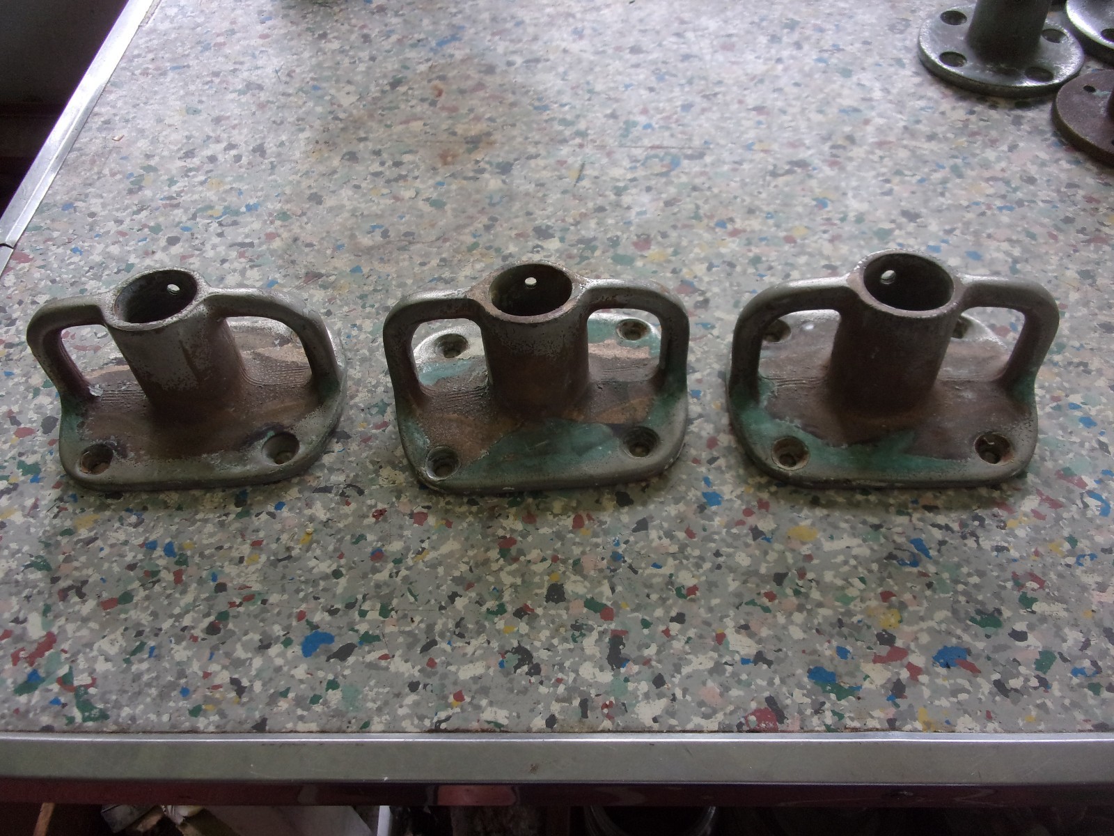 vintage bronze Boat 1'' Stanchion base fitting, lot of 3 matching