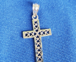 VINTAGE 14K WHITE GOLD FILIGREE CROSS PENDANT.