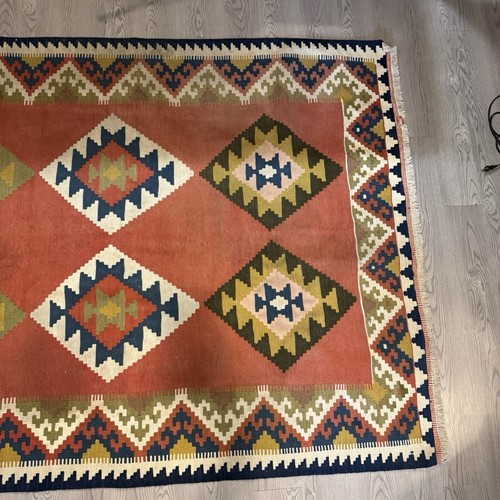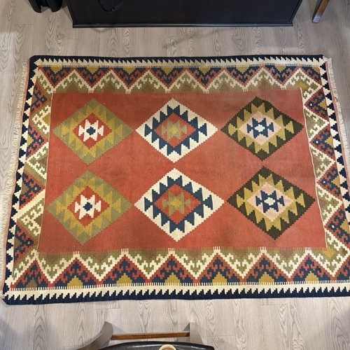 - vintage kilim wool area rugs 81”L x 62” w geometric artistry